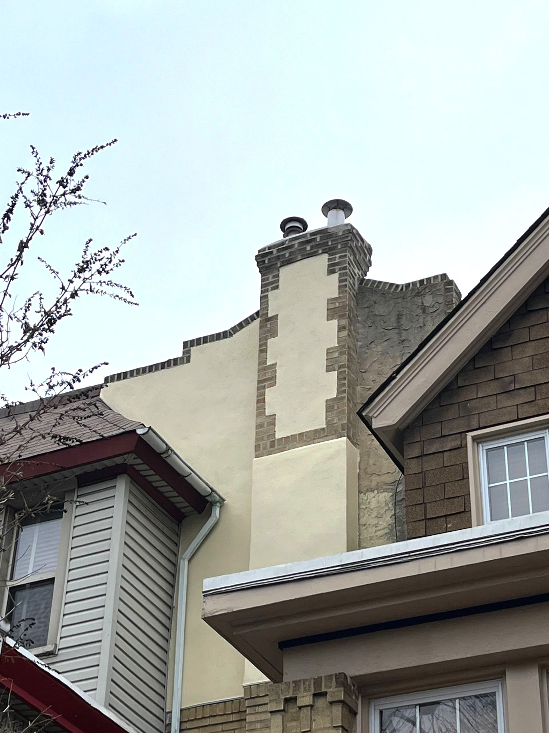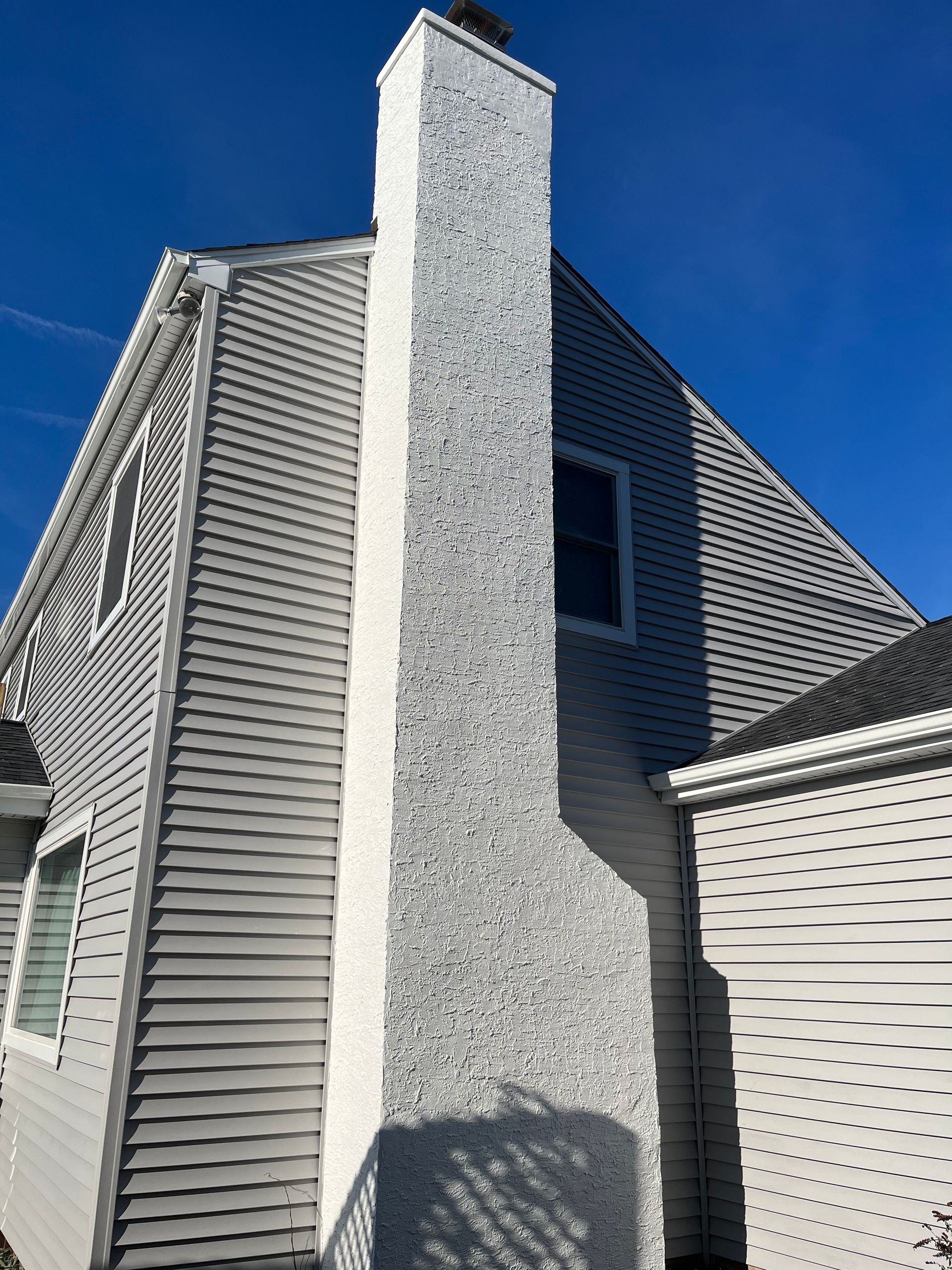 In our Northeastern climate, the chimney on your home usually plays an integral part in venting exhaust from your heating system. Exterior stucco chimney repairs are very common because the chimney, above the roofline, is exposed to all elements, from all angles, all year long; without a proper maintenance plan, this type of exposure tends to increase the frequency of repair. When our team assesses and repairs a stucco chimney, we focus on safety, functionality, and appearance. There are many different styles of stucco chimney finishes used in our area, but stippled and smooth tend to be the most common. Regardless of the finish style used, our team has expertise with completing your exterior stucco chimney repair project. From minor crack repairs to full rewiring and coating, you can depend on us to restore your chimney the right way, the first time!